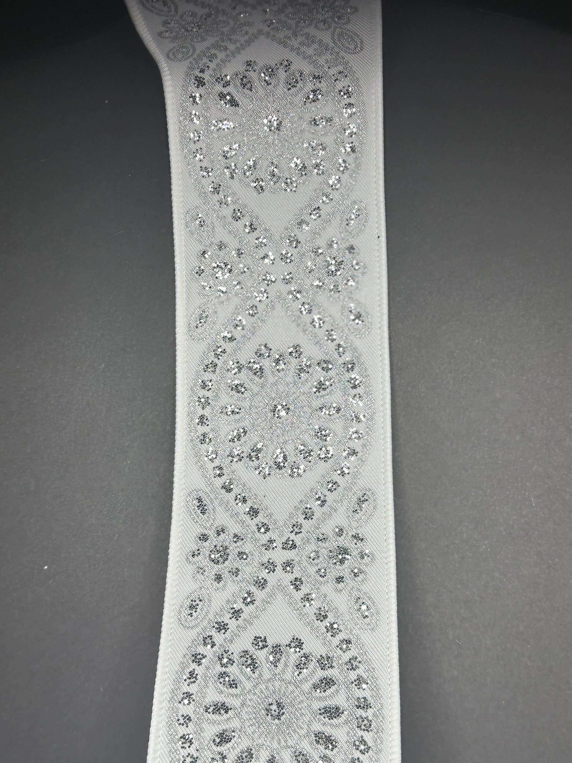 White ribbon with jeweled flower design (Included)